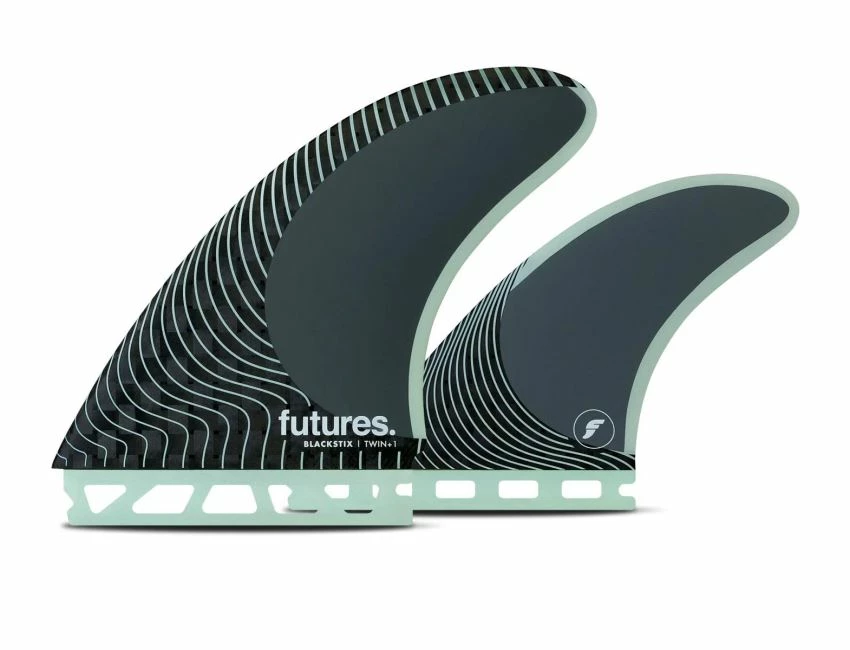Le Blackstix Twin +1 est doté d’une paire d’ailerons twin de style pivot avec un aileron arrière plus petit pour plus de stabilité.