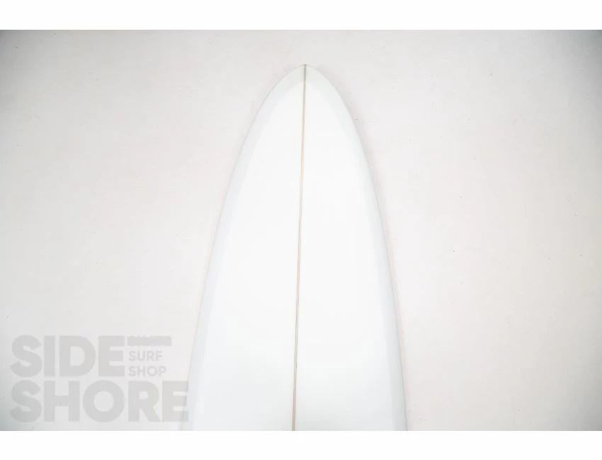 « J’ai conçu cette planche pour être surfée à l’origine sur les front side point breaks, mais j’ai découvert qu’elle était également une planche extrêmement polyvalente sur les beach breaks. Le rocker sur la carène commence par une entrée assez douce dans le nez qui se fond dans un simple concave puis se jette dans un double concave en V. »