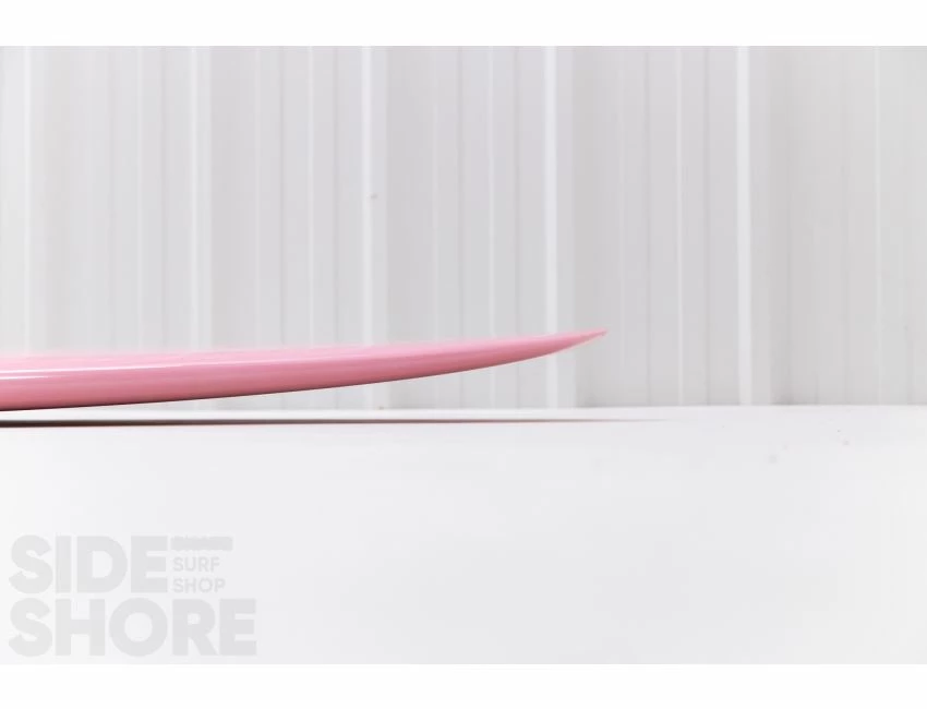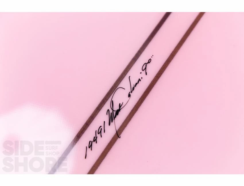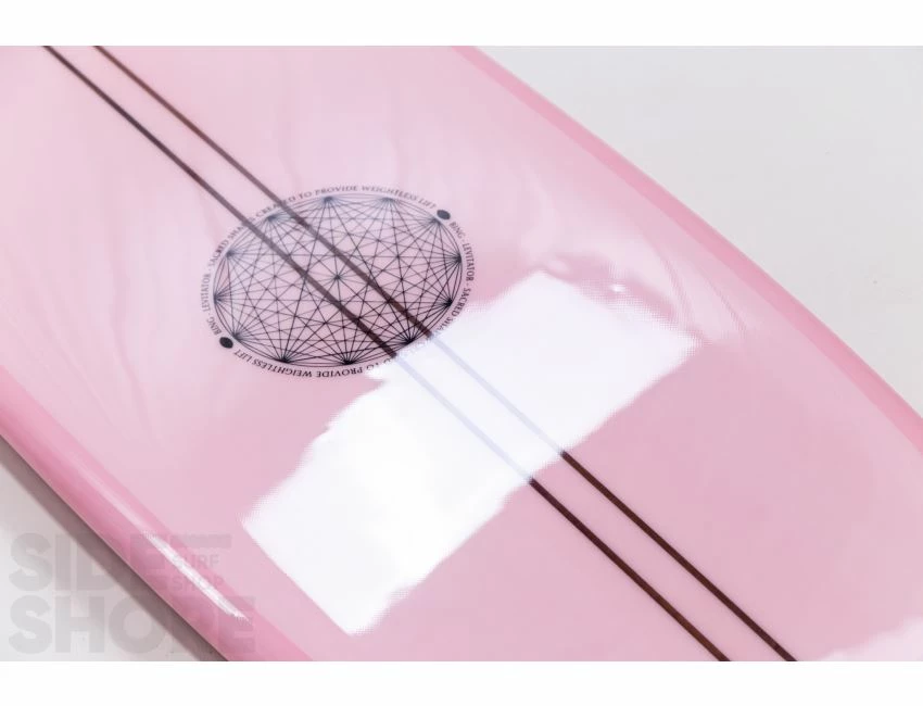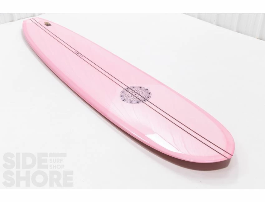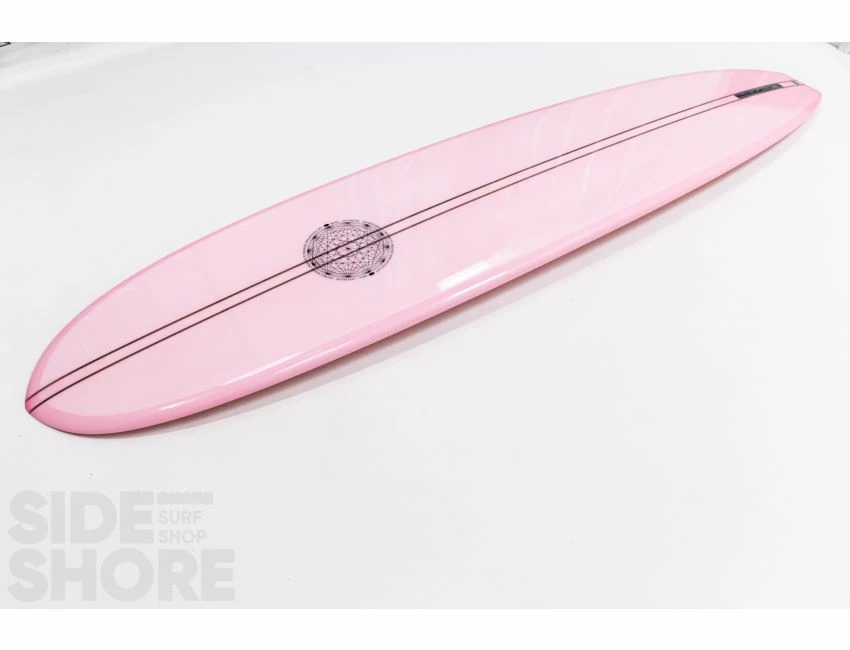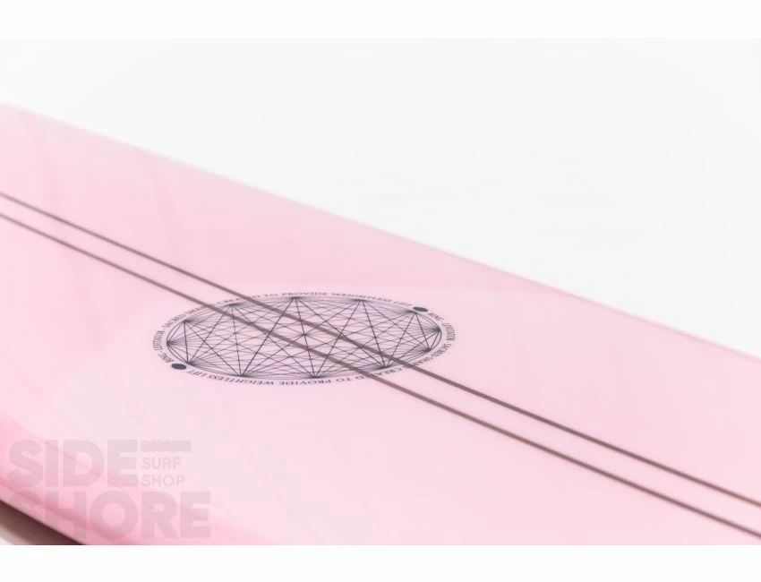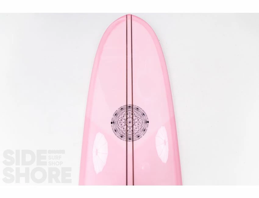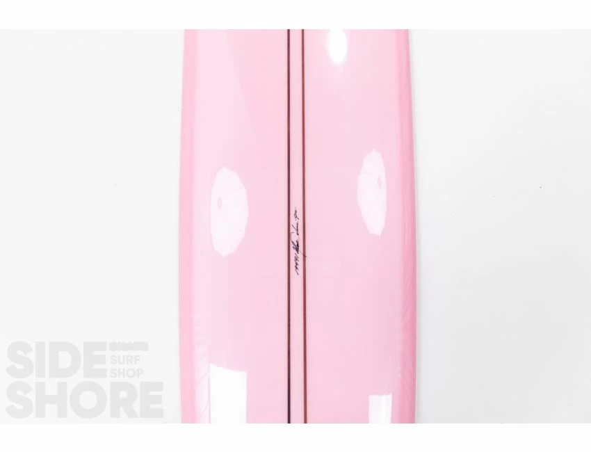 « J’ai décidé d’aborder son concept dans une direction différente et de développer en un longboard hybride avec des caractéristiques de performance. Je voulais une planche avec de la glisse pour contourner les sections critiques tout en maintenant la vitesse, ainsi que la capacité de faire des virages plus serrés plus rapides, dans un sens « enlever les freins », ce qui est courant avec la plupart des noseriders. J’ai ajouté du egde dans la queue qui se transforme en un rail 60/40 au milieu. J’ai conservé certains attributs de l’outline mais je l’ai rendu sensiblement plus étroit dans l’ensemble ; en particulier dans le nez et la queue, tout en gardant son nez pointu caractéristique. Avoir la pointe large légèrement vers l’avant en fait toujours un excellent noserider même avec le nez plus étroit. Enfin, nous avons déplacé le volume du pont dans le nez, compensant le besoin de la largeur supplémentaire dans la version originale. »