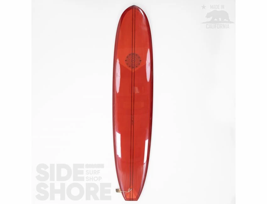 « J’ai décidé d’aborder son concept dans une direction différente et de développer en un longboard hybride avec des caractéristiques de performance. Je voulais une planche avec de la glisse pour contourner les sections critiques tout en maintenant la vitesse, ainsi que la capacité de faire des virages plus serrés plus rapides, dans un sens « enlever les freins », ce qui est courant avec la plupart des noseriders. J’ai ajouté du egde dans la queue qui se transforme en un rail 60/40 au milieu. J’ai conservé certains attributs de l’outline mais je l’ai rendu sensiblement plus étroit dans l’ensemble ; en particulier dans le nez et la queue, tout en gardant son nez pointu caractéristique. Avoir la pointe large légèrement vers l’avant en fait toujours un excellent noserider même avec le nez plus étroit. Enfin, nous avons déplacé le volume du pont dans le nez, compensant le besoin de la largeur supplémentaire dans la version originale. »