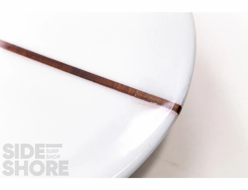 Pour glisser avec classe sa carène possède également des channels pour aider à canaliser l’eau et donner un peu plus de peps et d’accéleration à la planche. Typique des années 90 ce type de Channels ont largement fait leurs preuves ! Si on n’en voit pas beaucoup c’est qu’il est surtout difficile de les faires proprement à la main.