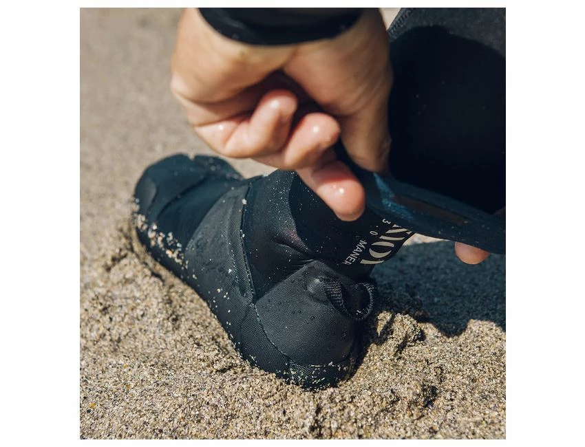 L’entrée des chaussons MANERA est fermée par un manchon en donut, qui laisse l’eau glisser vers l’extérieur au lieu de laisser le chausson se remplir.