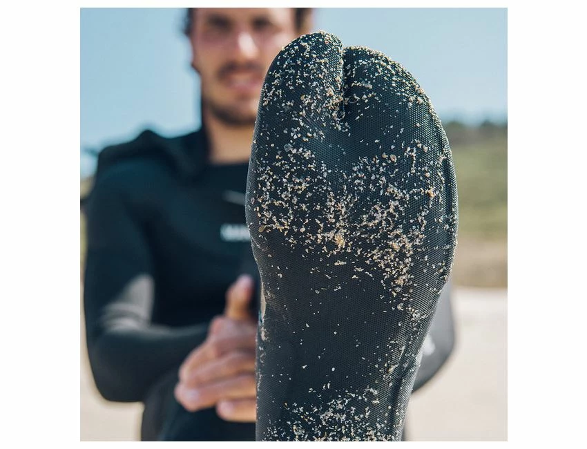 Le print autour de la cheville permet une meilleure attache entre le chausson et la combinaison. Couplé avec le SEALING PRINT de nos combinaisons, il empêche la combinaison de se retrousser.