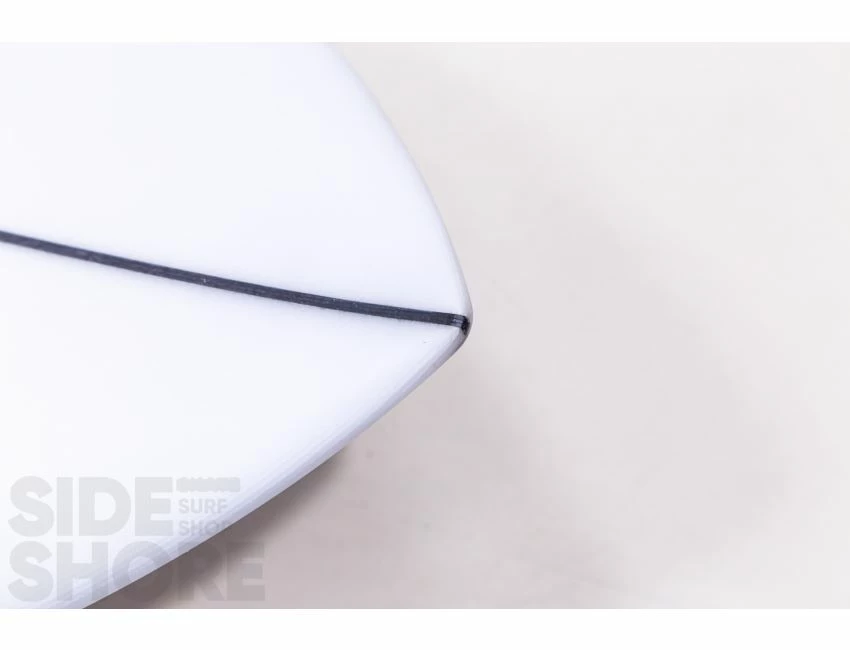 Nous avons d’abord utilisé la coupe latérale, dans notre modèle « Pelagic », une dizaine d’années plus tôt. Les contours latéraux n’ont rien de nouveau dans les planches de surf, les pionniers de San Diego comme Mirandon et Caster les utilisaient depuis des lustres. Nous pensons que la ligne d’outline permet à une planche à pont plat et généralement parallèle, de tourner plus net et de conserver la vitesse dans les virages radicaux.
