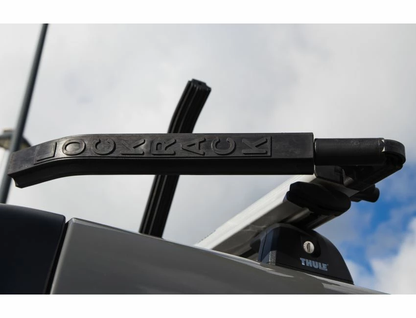 La barre principale et les bras latĂ©raux sont munis de caoutchouc antidĂ©rapant très efficace qui offre un excellent maintient et une protection optimale des planches. Les bras sont rĂ©glables en longueur et s’encastre dans la barre principale. Le rĂ©glage de la largeur est très intuitif. L’ouverture des bras latĂ©raux se fait uniquement Ă l’aide d’une clef. Une fois le bras enclenchĂ© (en position horizontale ou verticale dans la barre principales), il est impossible de le dĂ©loger. Un système qui fait de Lockrack non seulement un excellent dispositif de transport mais aussi, un cadenas gĂ©ant.